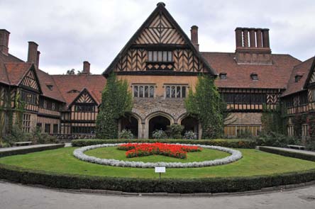| 宮殿というよりも、英国風の館といった感じのこの宮殿は、ホーエンツォレルン家の最後の皇太子ヴィルヘルムが家族とともに住んでいた。宮殿には皇太子妃ツェツィーリアの名がつけられている。 わざわざここを訪れるのは、1945年7月17日〜8月2日にここでポツダム会談が開かれたからである。この時期ドイツはすでに降伏し、日本は8月15日の降伏直前であった。米国、英国、ソ連の3カ国の首脳が集まり、第2次世界大戦の戦後処理とソ連の対日参戦を含めた日本の終戦について話し合われた。 |