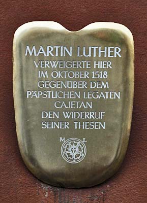 宗教改革者マルティン・ルターが、1518年に、ここで、宗教論争を展開した |