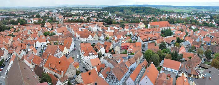 | ダニエルの塔から眺めたネルトリンゲンの町 400mほど先に城壁が、10kmほど先にクレーターの壁らしいものが見える |