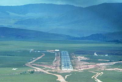 | 熱帯雨林の中を蛇行する川 | 何もないところに突然滑走路が現れる。ルエパ空港だ。 |