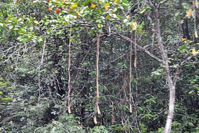 木の枝から実のようなものがぶら下がっている。 正にジャングルである。 |
