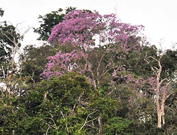 | アウヤンはペモン族の言葉で悪魔のこと、何となく分る | カラオ川の下流の岸辺には、こんな花の咲く木もある |