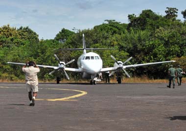 | 午前中の最後のエンジェルフォール・フライトから帰った後、午後再びカナイマ空港からセスナ機でプエルトオルダスへ飛ぶ。 |