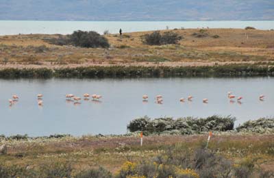 | 今日は、ホテルを発って、マゼラン海峡をフェリーで渡り、フエゴ島に行く。フエゴ島を車で走り、チリからアルゼンチンへ国境を越え、ウシュアイアまで行く。 |