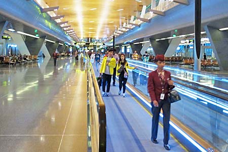 | ドーハ空港上空から見る不夜城 | 産油国カタールのドーハ空港は広くて近代的 |