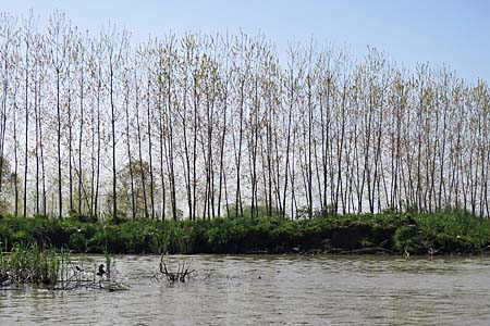 | 鳥の名はよく知らないが、ウミウ、カモメなど4、5種が見られた | 葦のほか背の高い樹木も生えている |