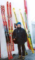 | モルゲダールには小さなスキー場がある。ここで念願のテレマーク・スキーが出来た。 (左)ホテルでアルバイトをしている学生さん、(右)小生 |