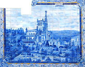 | アヴェイロの町は自然の良港として16世紀に繁盛したが、大暴風雨で水路が砂で塞がってさびれてしまった。19世紀になって大暴風雨で水路が開け、再び町は漁業で立ち直ったという。潟で採れる海藻肥料のお蔭で地味が肥え、酪農も盛んである。肥料用の海藻を集める船をモリセイロといい、今は観光名物になっている。 町のはずれにあるアヴェイロ駅は美しいアズレージョで飾られている。ポルトガル語で青をアズール(AZUL)といい、アズレージョは装飾タイルのことである。青系が多く、伊万里焼の影響があるという。 |