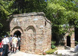 | エフェソスの遺跡から6kmほど離れたブルブル山の中に、聖母マリアの家といわれる所がある。 18世紀にマリナ・カテリーナという尼僧が天啓を受けてこの場所を語り始め、探し当てられたという。 1967年にローマ法王パウロ6世がここでミサを行い、この家が認知された。 イエス亡き後、聖母マリアが余生を送った所といわれ、信者にとっては貴重な聖地であろう。 |