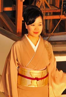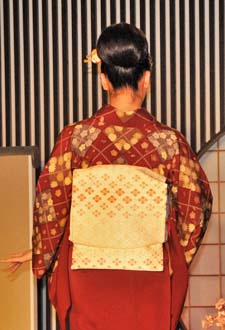 生糸から織られた絹織物は、和服の華である。 京都の西陣織会館では、毎日着物ショーが繰り広げられる。 |