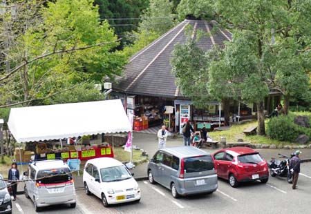 | 近くを国道311号が走っており、参詣道から道の駅「熊野古道中辺路」を見下ろせる | ||