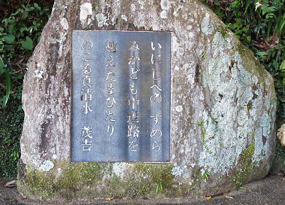 齋藤茂吉は、昭 和9年(1934年)に土屋文明と ともに熊野を訪れ、短歌を詠んだ いにしへの すめらみかども中辺路を 越えたまひたり のこる真清水 |