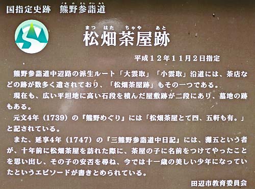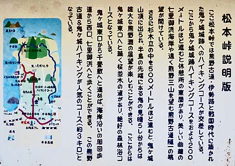 | 松本峠から東に200mほど行ったところに、 七里御浜や遠く熊野三山を望む熊野古道随一の展望台があるという |