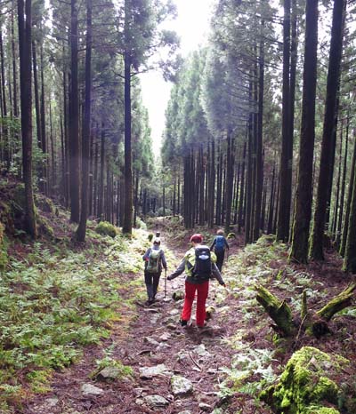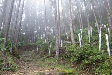 熊野古道といえば杉並木を連想しがちだが、 この辺りは落葉広葉樹が多く、樹下は明るい |