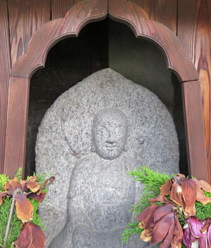 | 石の鳥居が立ち立派な祠がある | 祠の裏手にある南淵請安の墓(撮りそこなったのでWebsiteから) |