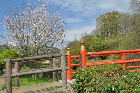 | 飛鳥川を跨いで男綱が架けられている | 勧請橋の欄干に、「南淵請安先生講義図」というレリーフが嵌められている | |||