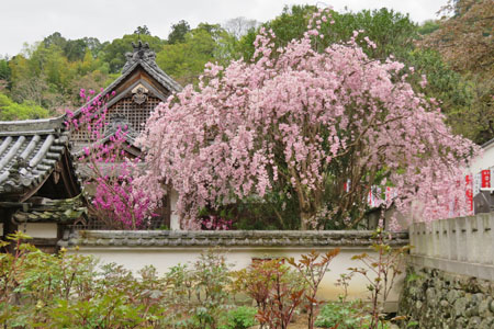 | さらに東へ下ると、當麻寺(たいまでら)がある。7世紀創建の寺院で、創建時の本尊は弥勒仏であるが、現在信仰の中心となっているのは当麻曼荼羅である。當麻氏の氏寺として始まった當麻寺は、中世以降は中将姫伝説と當麻曼荼羅の寺として知られるようになる。本堂、塑造弥勒仏坐像、當麻曼荼羅図などが国宝に指定されている。 |
