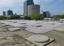 | 大阪歴史博物館は一部遺構の上に建っている。歴史博物館の展示と合わせて、周辺の法円坂遺跡、前期難波宮跡、後期難波宮跡を見学した。 |